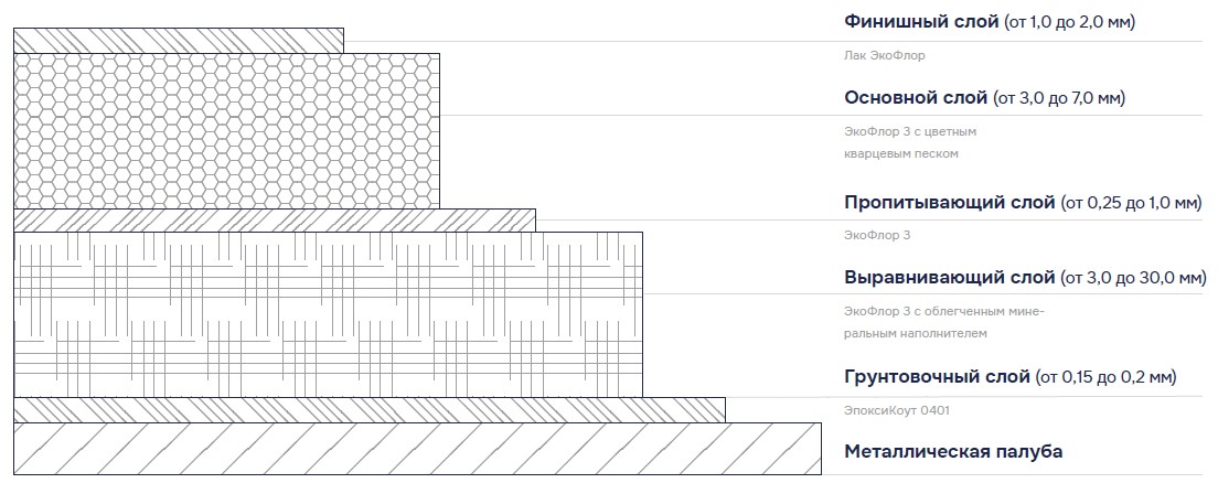 Расход материалов и масса покрытия зависят от требуемых толщин слоев.